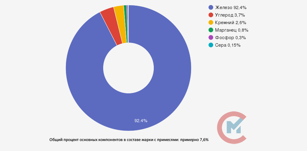 Добавление пластинчатого графита понижает прочностные качества чугуна, но повышает показатель износостойкости сплава, предел выносливости и чувствительность к надрезам. В состав серого чугуна марки СЧ10 входит углерод, кремний, марганец, железо, сера, фосфор.